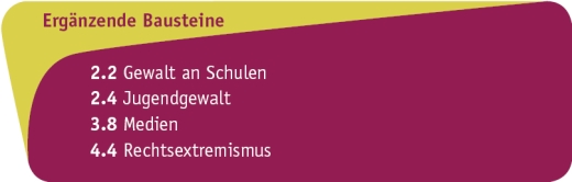 Der Themenbereich „Gewalt an Schulen“ wird in Kap. 2.2 ausführlich dargestellt.